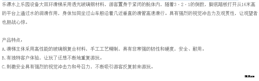 水上樂園設(shè)施您當(dāng)前的位置:網(wǎng)站首頁 > 產(chǎn)品展示 > 水上樂園設(shè)備 > 水上樂園設(shè)施>水上滑梯系列
